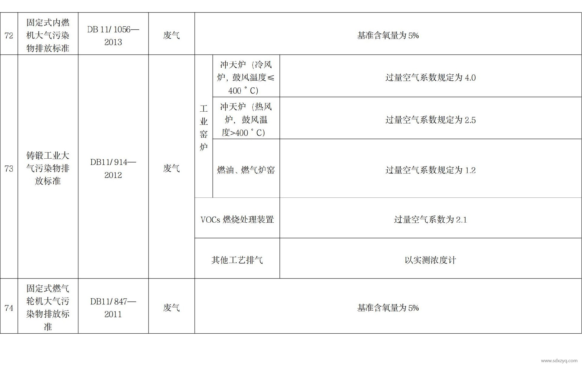 固定污染源監控中心收集了部分標準規范中要求的過 量空氣系數、基準含氧量以及基準排氣/水量,摘錄如下(持 續更新中):