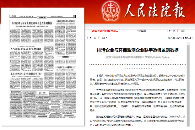 2021年8月3日,《人民法院報》關注武漢市中級人民法院宣判的一起大氣污染民事公益訴訟案件。現全文刊載如下: